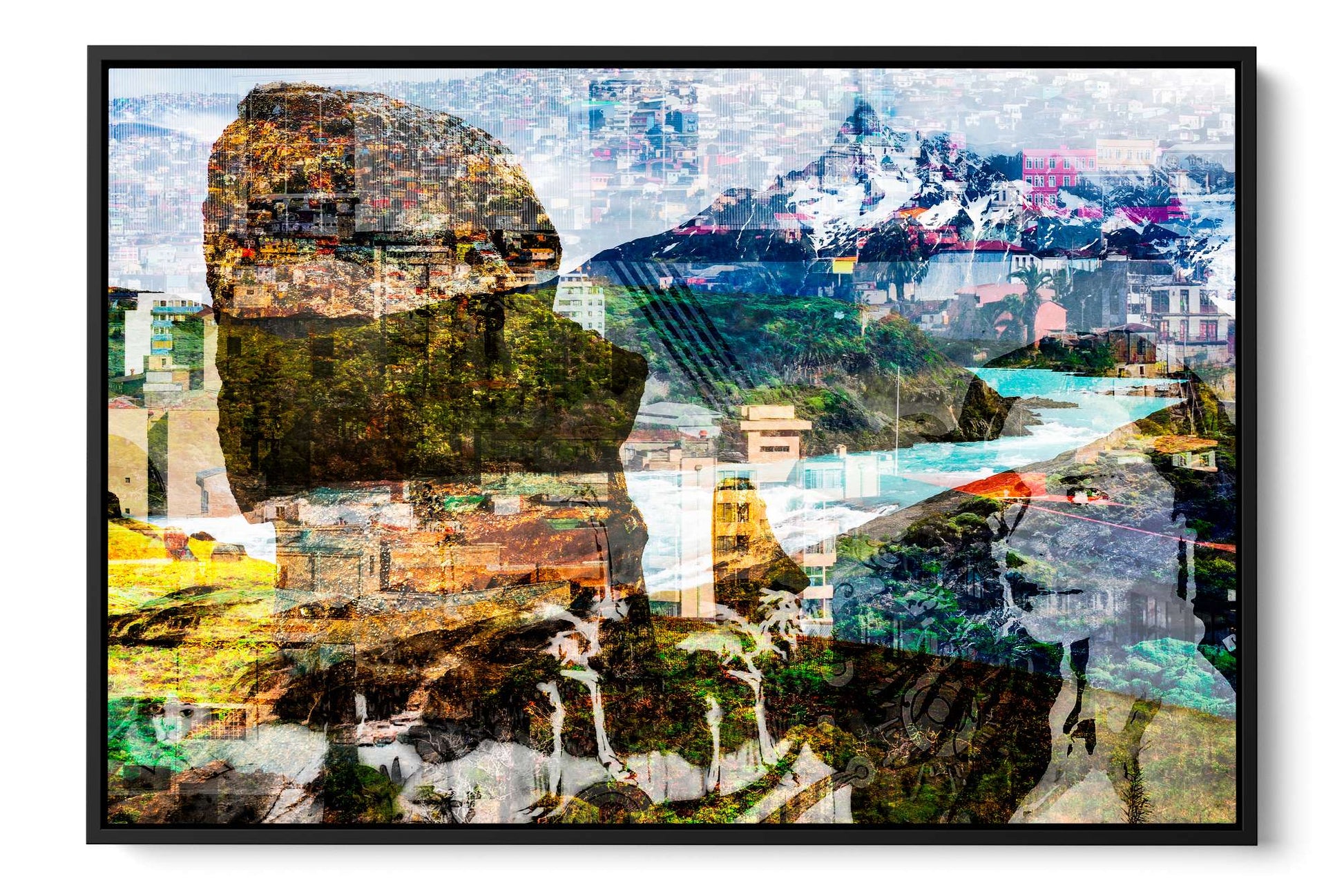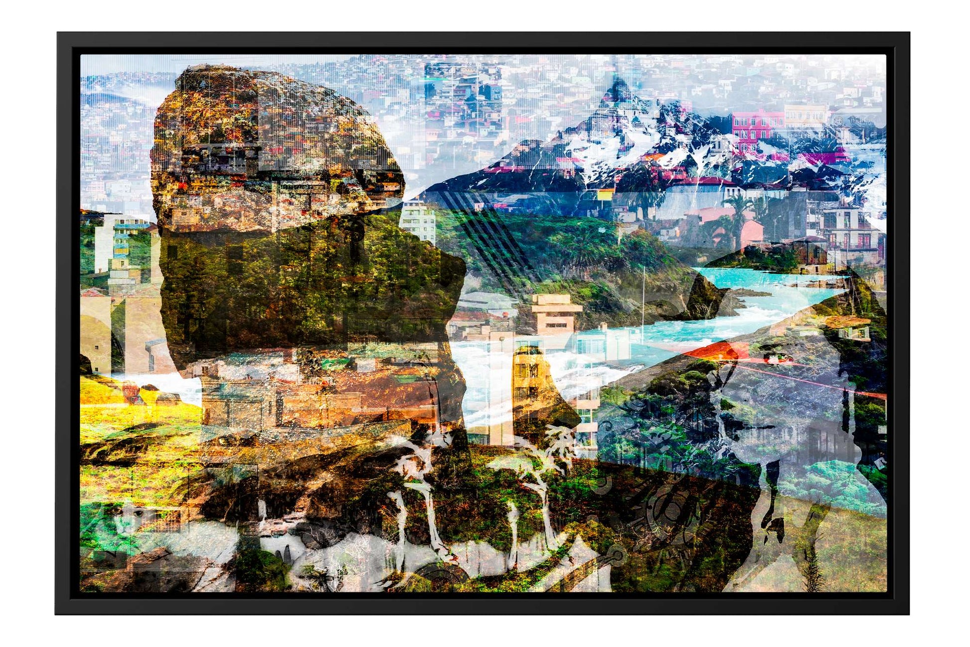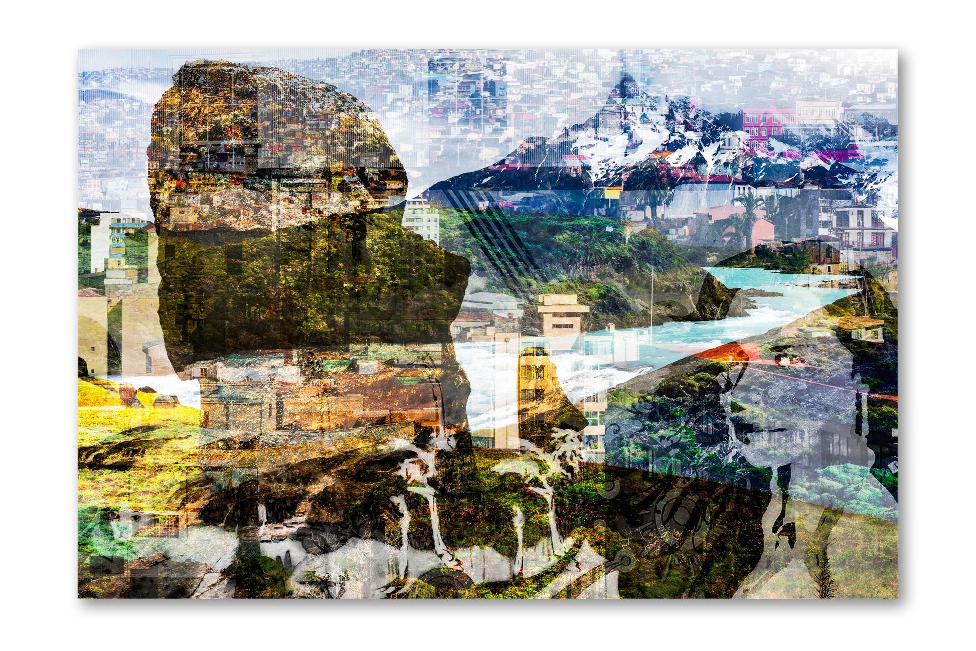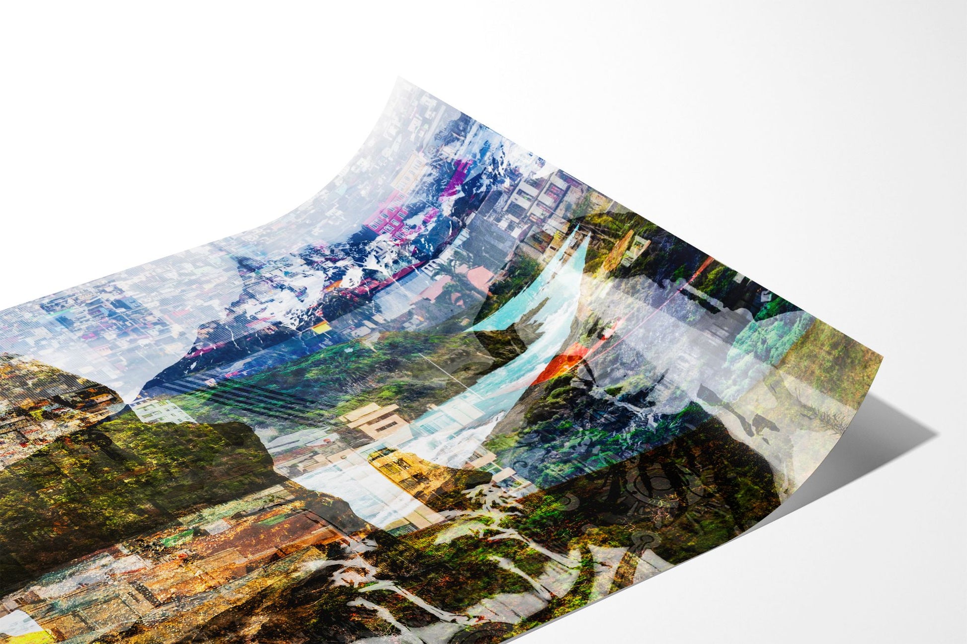 In Chilean Poem, Charlotte Fonne captures the poetic atmosphere of Chile through her layered photographic technique, blending reality and memory. The artwork features Patagonia’s Torres del Paine National Park with the turquoise Paine River cascading into Salto Grande Waterfall against snow peaks, conveying the profound stillness and grandeur of nature. It also includes an enigmatic moai statue from Easter Island as a silent guardian of time, adding rhythm and mystery to the composition. This fine art photography print also showcases the city of Valparaíso, once home to poet Pablo Neruda, with colorful murals and hillside houses, honoring the city’s artistic spirit. This artwork reinterprets Chile as a poetic landscape where the wild, mystical, and artistic energy converge.