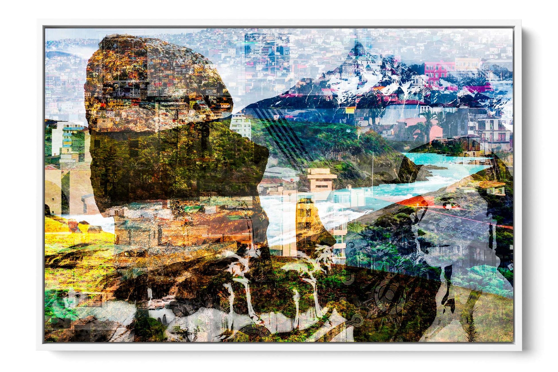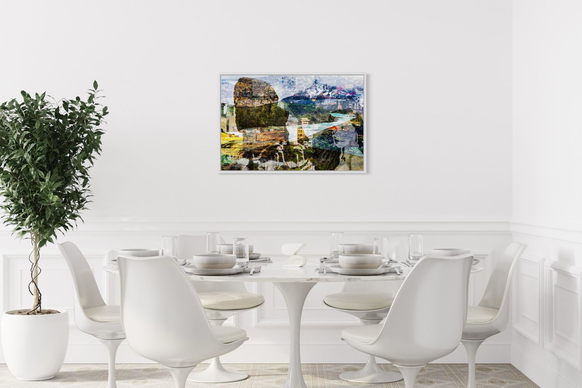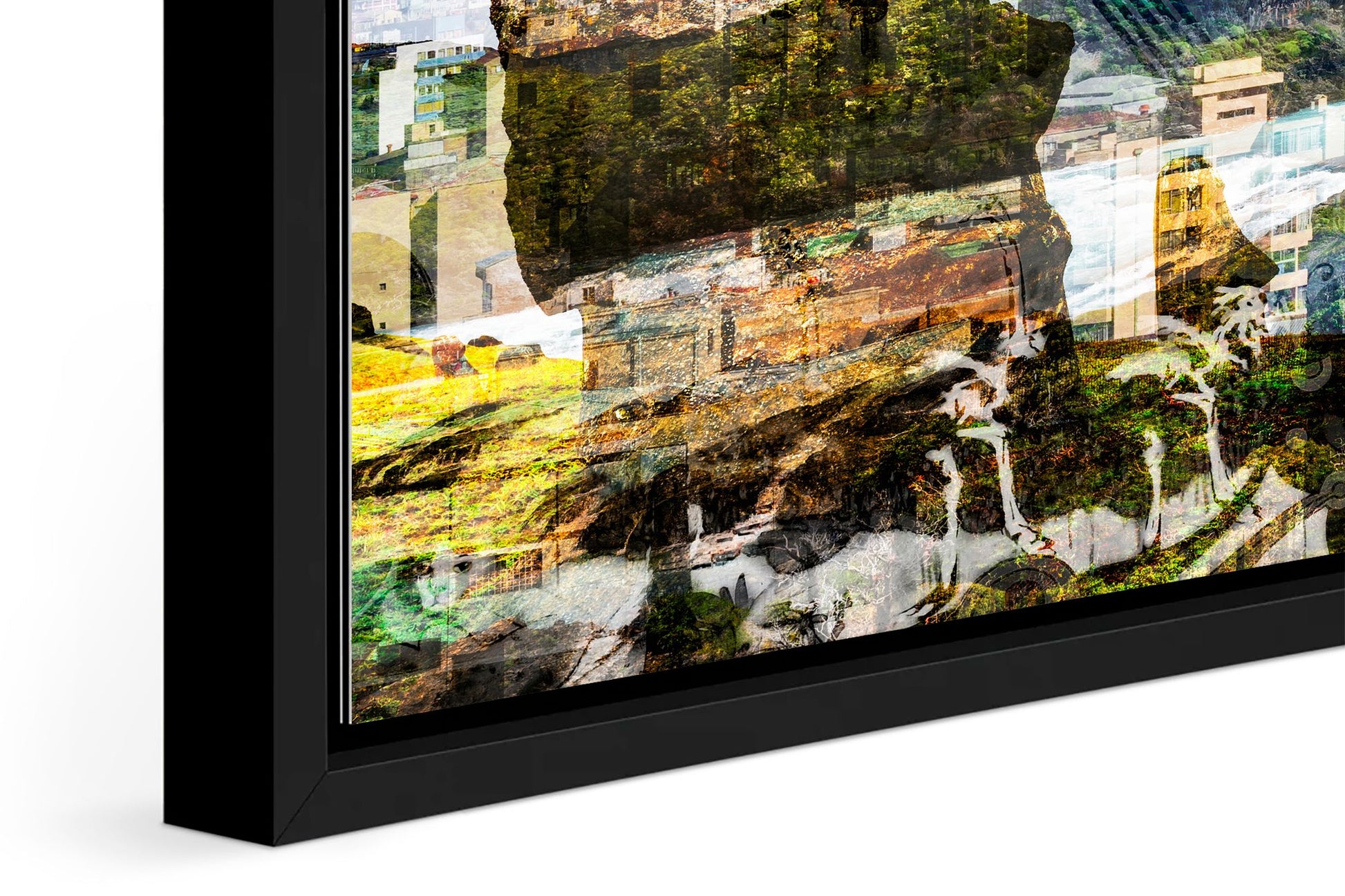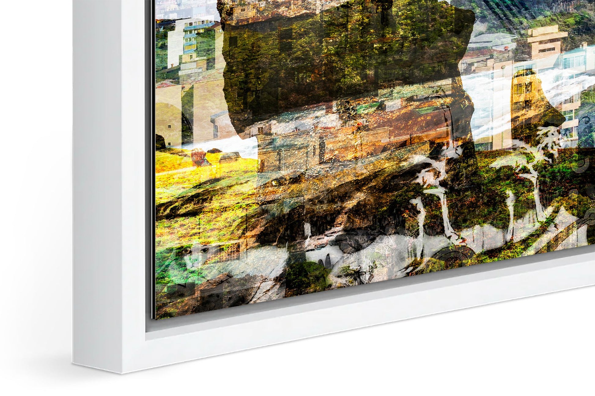 In Chilean Poem, Charlotte Fonne captures the poetic atmosphere of Chile through her layered photographic technique, blending reality and memory. The artwork features Patagonia’s Torres del Paine National Park with the turquoise Paine River cascading into Salto Grande Waterfall against snow peaks, conveying the profound stillness and grandeur of nature. It also includes an enigmatic moai statue from Easter Island as a silent guardian of time, adding rhythm and mystery to the composition. This fine art photography print also showcases the city of Valparaíso, once home to poet Pablo Neruda, with colorful murals and hillside houses, honoring the city’s artistic spirit. This artwork reinterprets Chile as a poetic landscape where the wild, mystical, and artistic energy converge.
