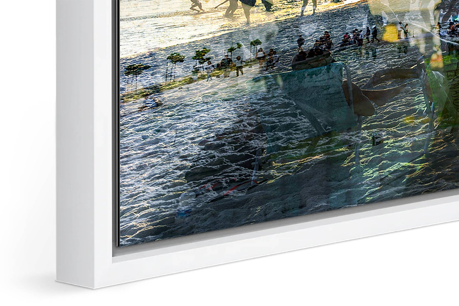 This custom-made solid hardwood frame creates a unique visual effect with a gap between the image and the frame, giving the impression that your artwork is levitating. The contemporary design is both elegant and subtle, enhancing the presence of the piece without overwhelming it. Available in two colors, black or white, the frame complements a variety of styles.