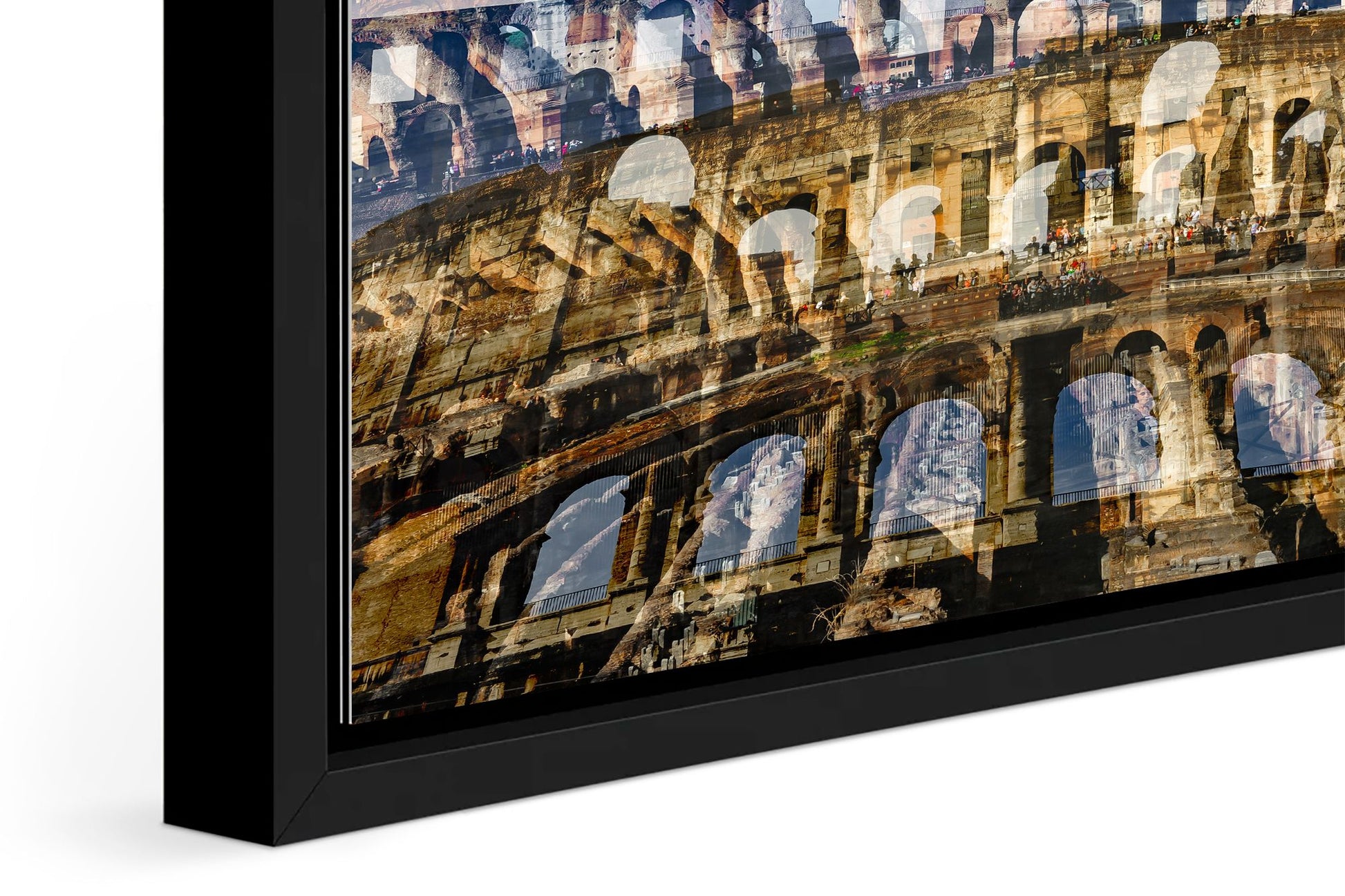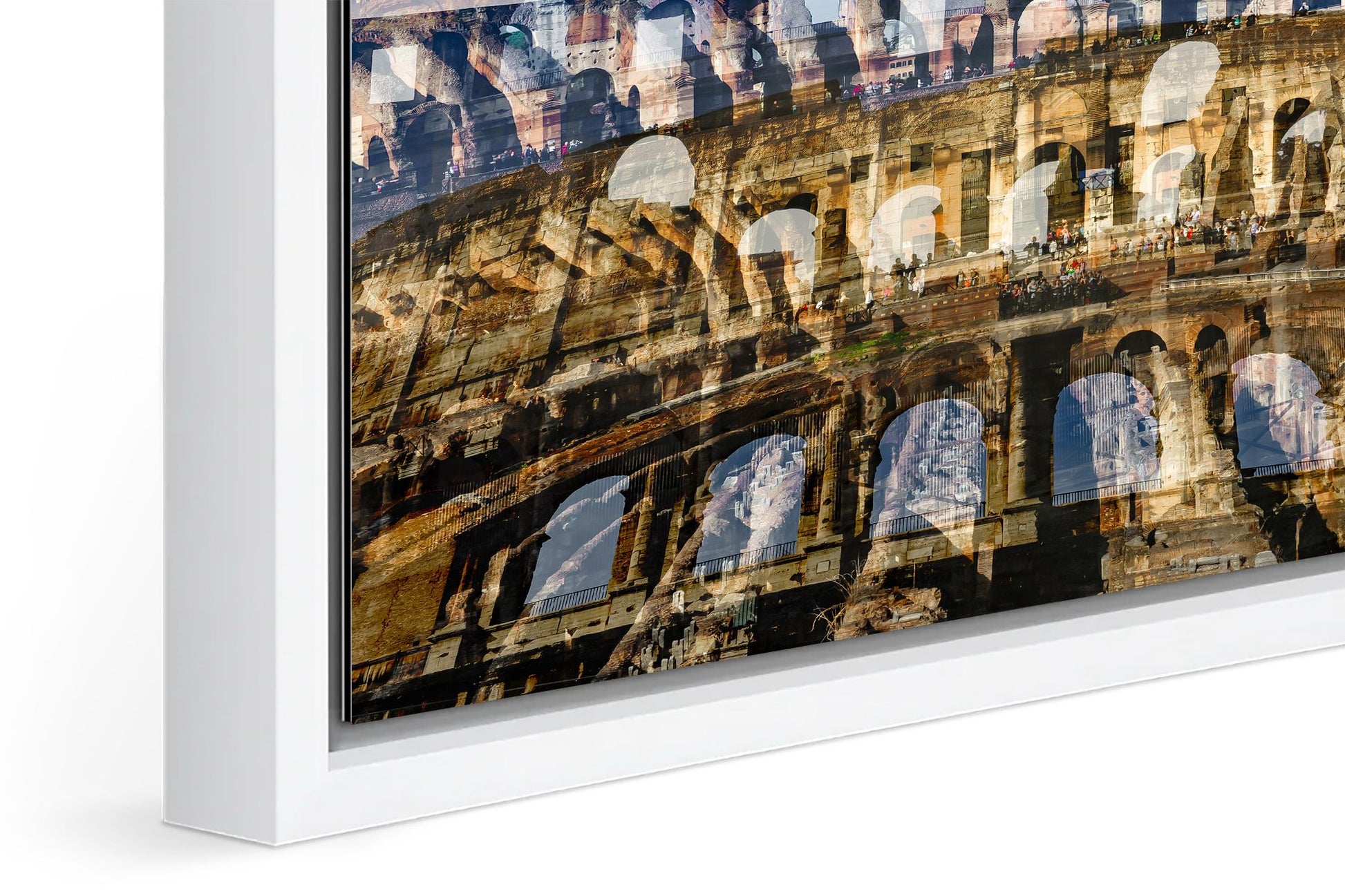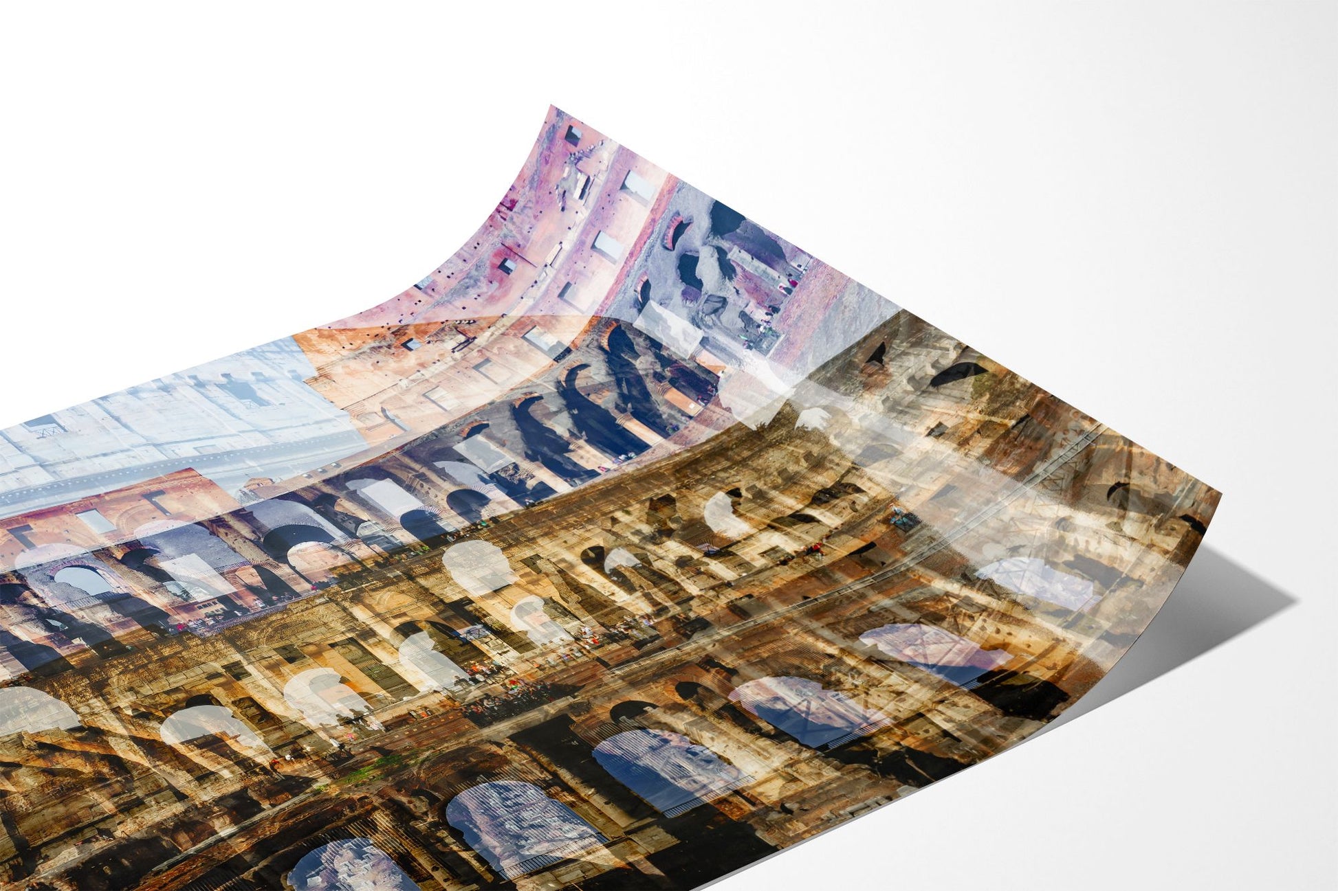 In Colosseo, Charlotte Fonne reinterprets the grandeur of Rome’s Colosseum through her layered photographic technique. This Cubist-inspired artwork blends multiple angles and perspectives to create a fragmented composition of the amphitheater. This new representation offers a way of seeing the architecture from different sides, revealing details that could have been left unnoticed in a traditional photograph. The warm tones of earthy browns and deep reds highlight the monumental structure, built in AD 80 as the largest colosseum ever constructed. Arches and curves draw the eye inward, evoking the echoes of the crowds, the clash of the gladiators, and centuries of history. Tiny figures within the scene reflect the countless visitors who come to discover this landmark all year round. This fine art photography print celebrates the lasting spirit of the Colosseum, uniting past and present through depth and movement.