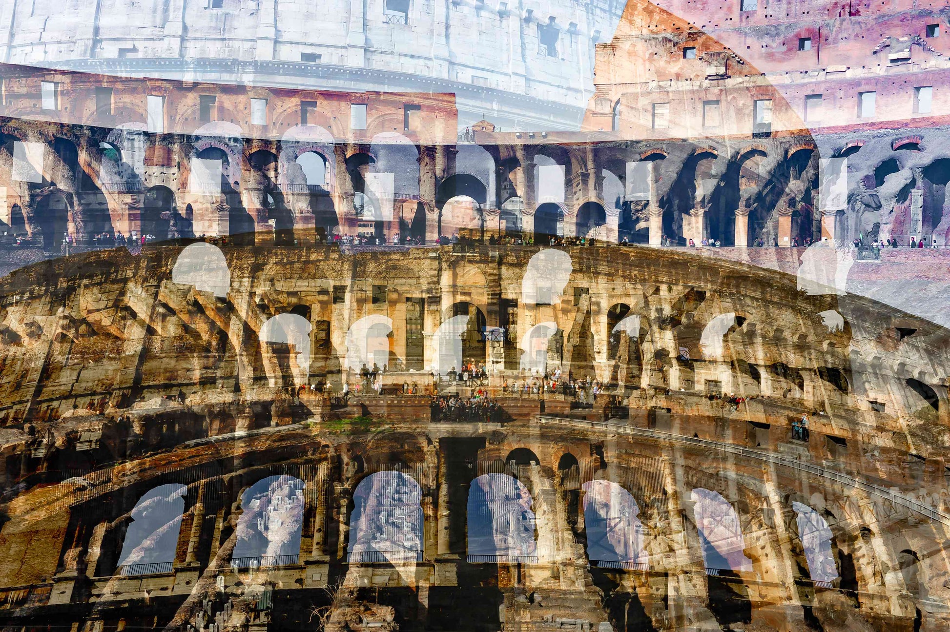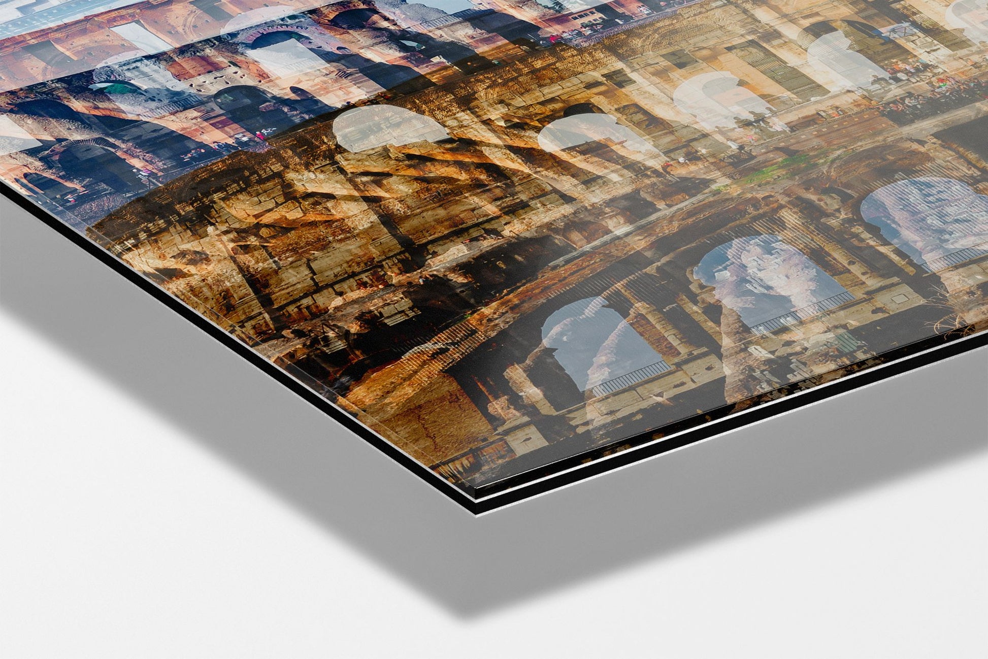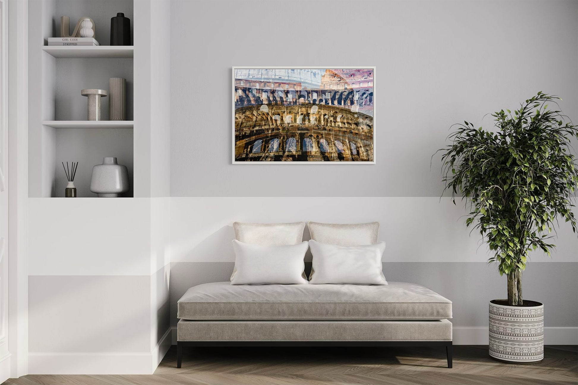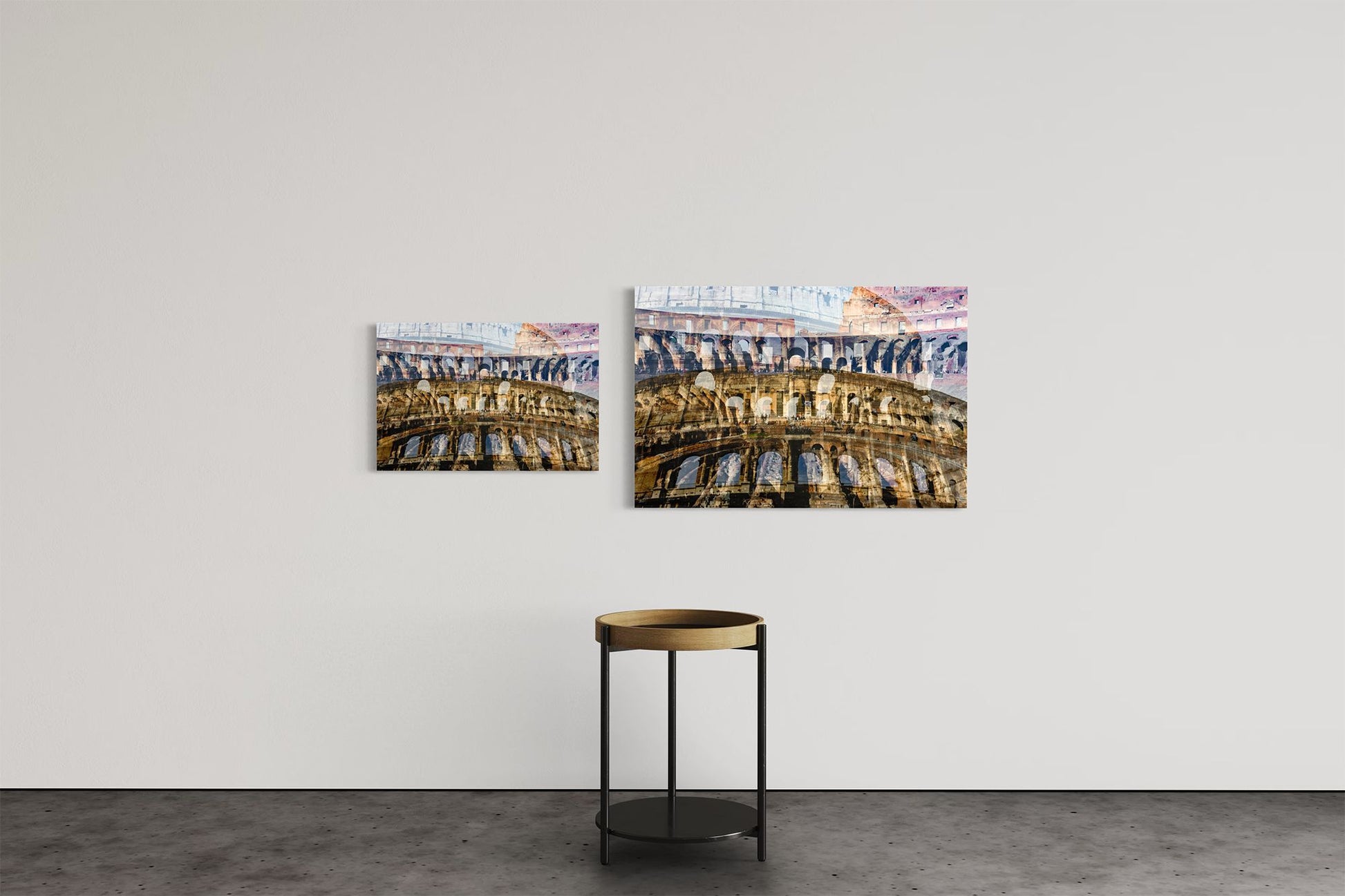 In Colosseo, Charlotte Fonne reinterprets the grandeur of Rome’s Colosseum through her layered photographic technique. This Cubist-inspired artwork blends multiple angles and perspectives to create a fragmented composition of the amphitheater. This new representation offers a way of seeing the architecture from different sides, revealing details that could have been left unnoticed in a traditional photograph. The warm tones of earthy browns and deep reds highlight the monumental structure, built in AD 80 as the largest colosseum ever constructed. Arches and curves draw the eye inward, evoking the echoes of the crowds, the clash of the gladiators, and centuries of history. Tiny figures within the scene reflect the countless visitors who come to discover this landmark all year round. This fine art photography print celebrates the lasting spirit of the Colosseum, uniting past and present through depth and movement.