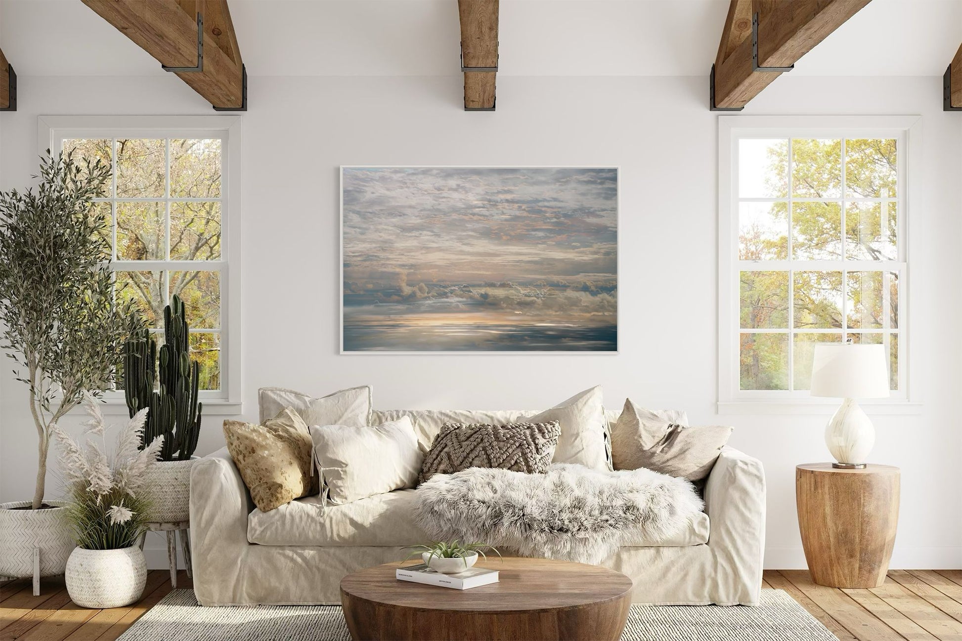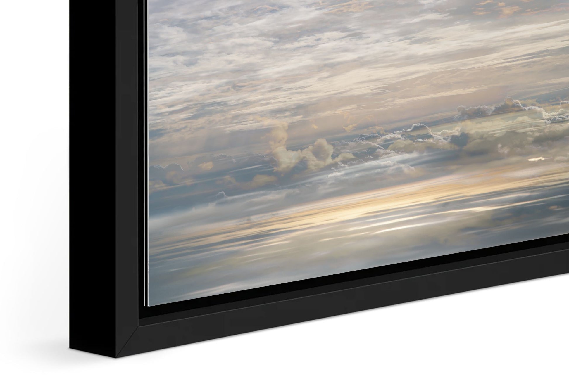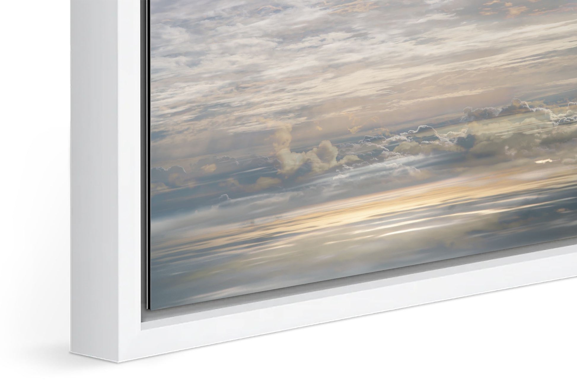 This custom-made solid hardwood frame creates a unique visual effect with a gap between the image and the frame, giving the impression that your artwork is levitating. The contemporary design is both elegant and subtle, enhancing the presence of the piece without overwhelming it. Available in two colors, black or white, the frame complements a variety of styles.