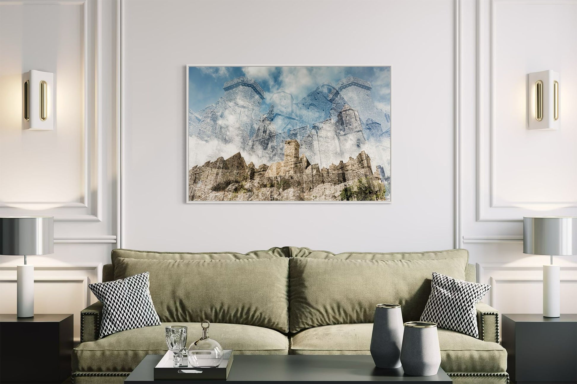 This custom-made solid hardwood frame creates a unique visual effect with a gap between the image and the frame, giving the impression that your artwork is levitating. The contemporary design is both elegant and subtle, enhancing the presence of the piece without overwhelming it. Available in two colors, black or white, the frame complements a variety of styles.