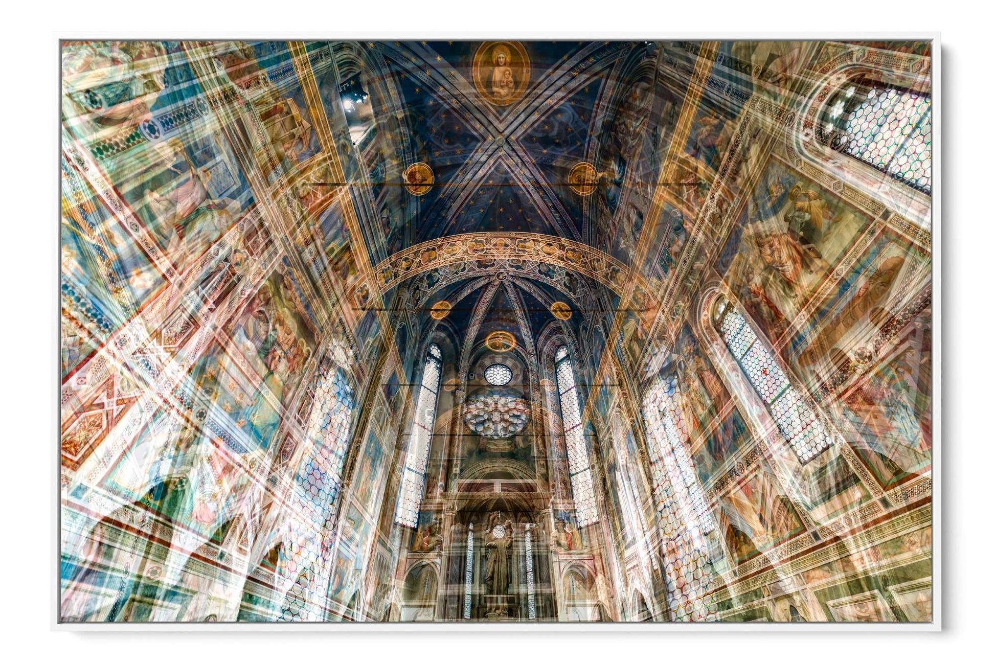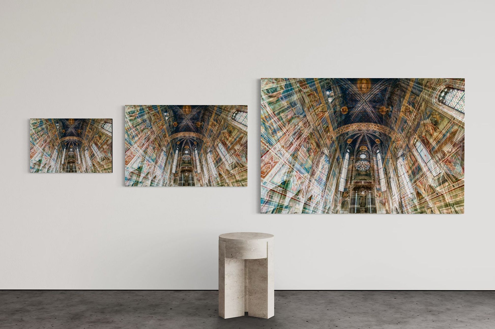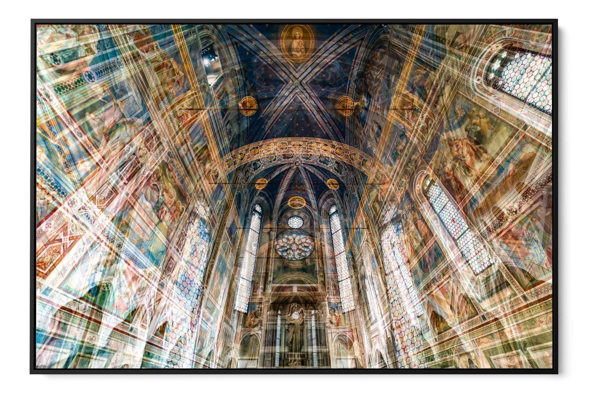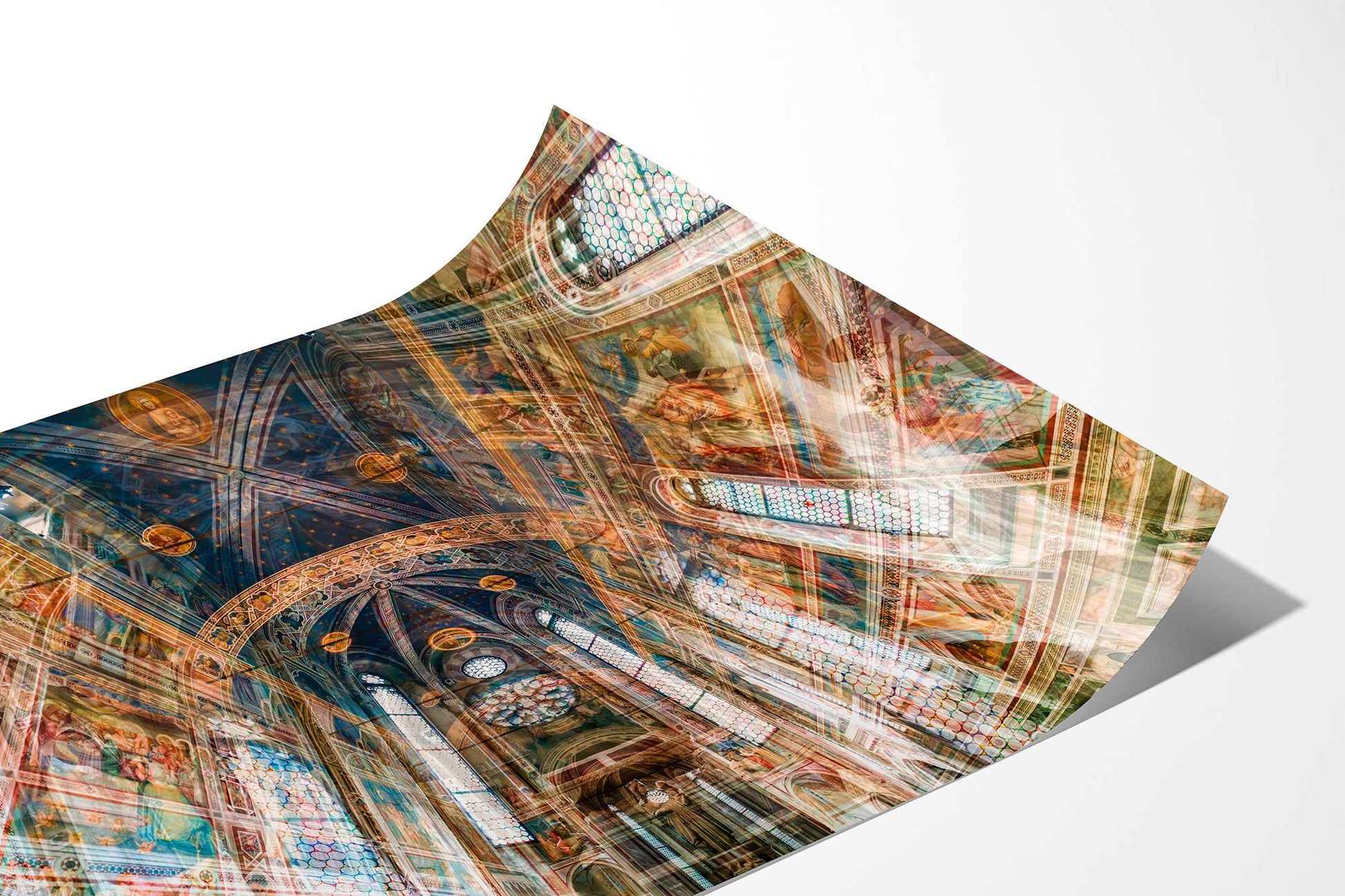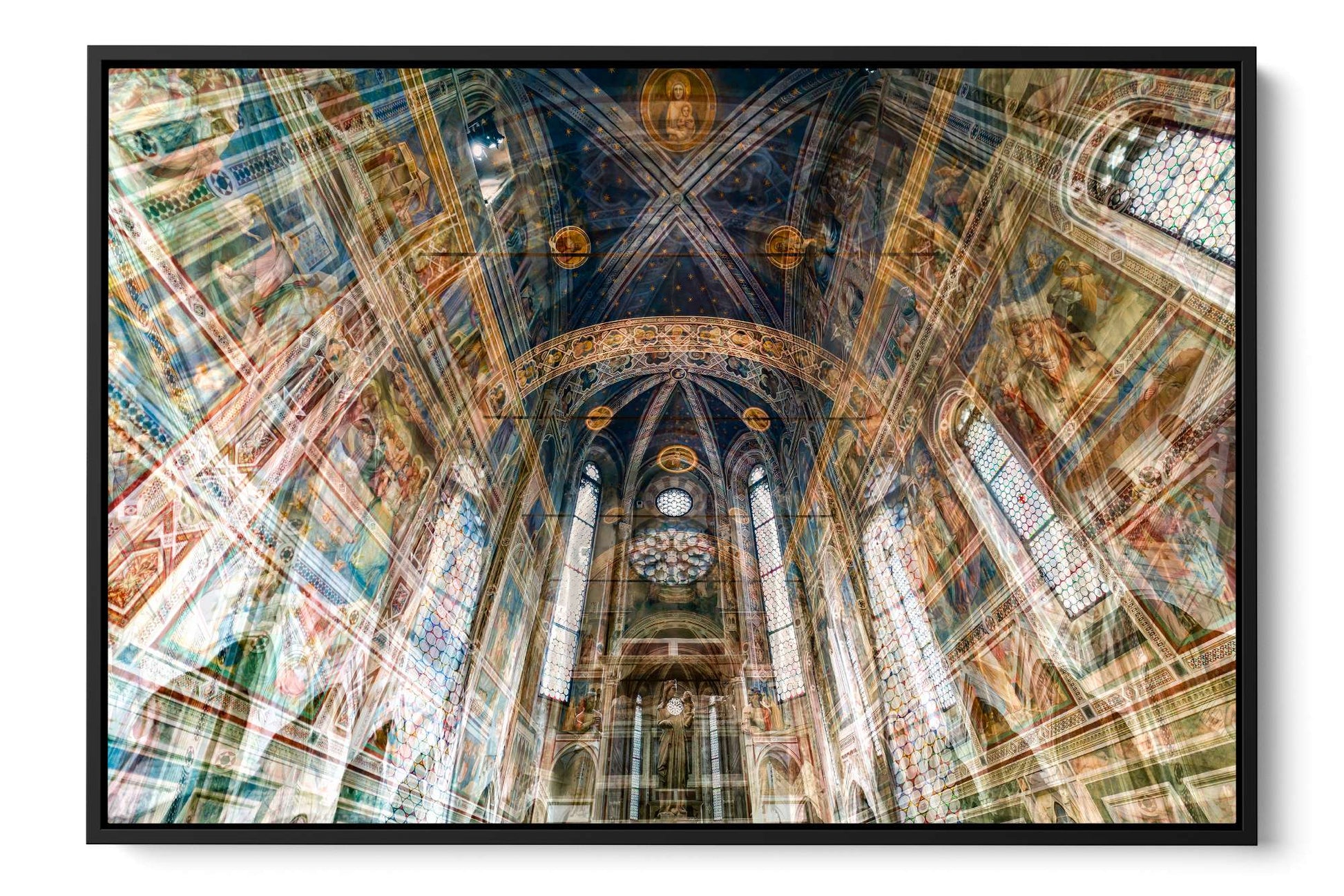 In Scrovegni Chapel, Charlotte Fonne captures the impressive beauty and historical significance of Padua’s iconic chapel through her layered photographic technique. The artwork presents a Cubist-inspired interpretation of Giotto’s extraordinary fresco cycle, depicting scenes from the Life of Christ and the Life of the Virgin. Through multiple perspectives and fragmented views, Charlotte conveys the chapel’s vast scale, intricate details, and revolutionary use of space and perspective, creating a dynamic visual experience. The fine art photography print celebrates the intersection of art, history, and spirituality, offering viewers a fresh way to experience one of Western art’s most significant masterpieces.