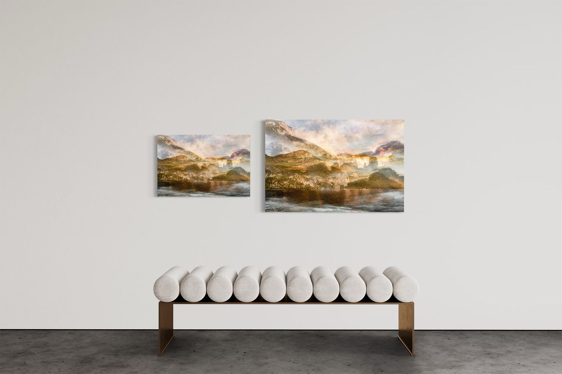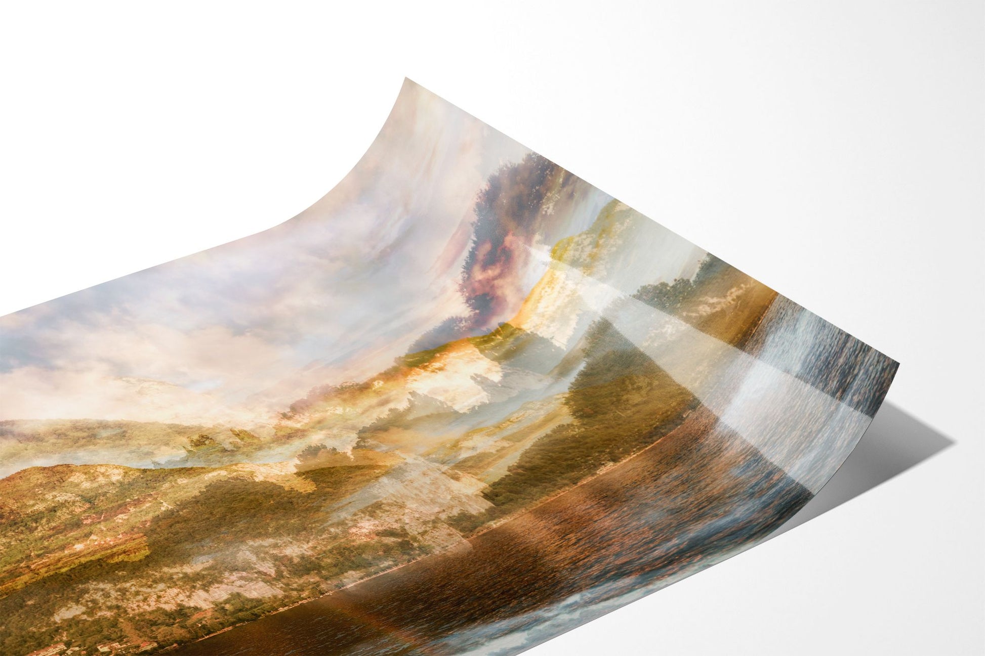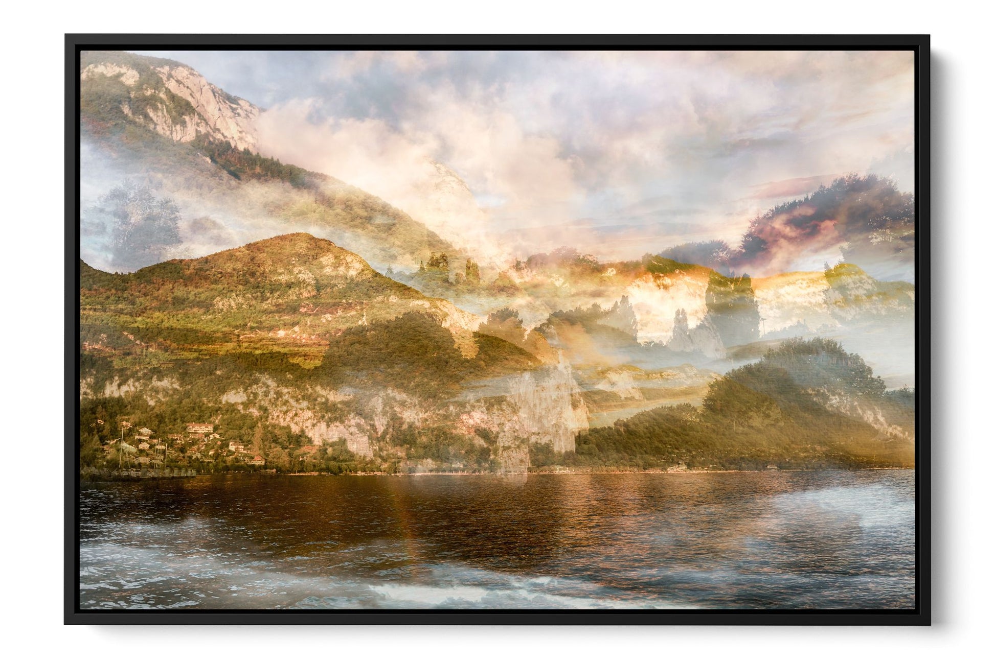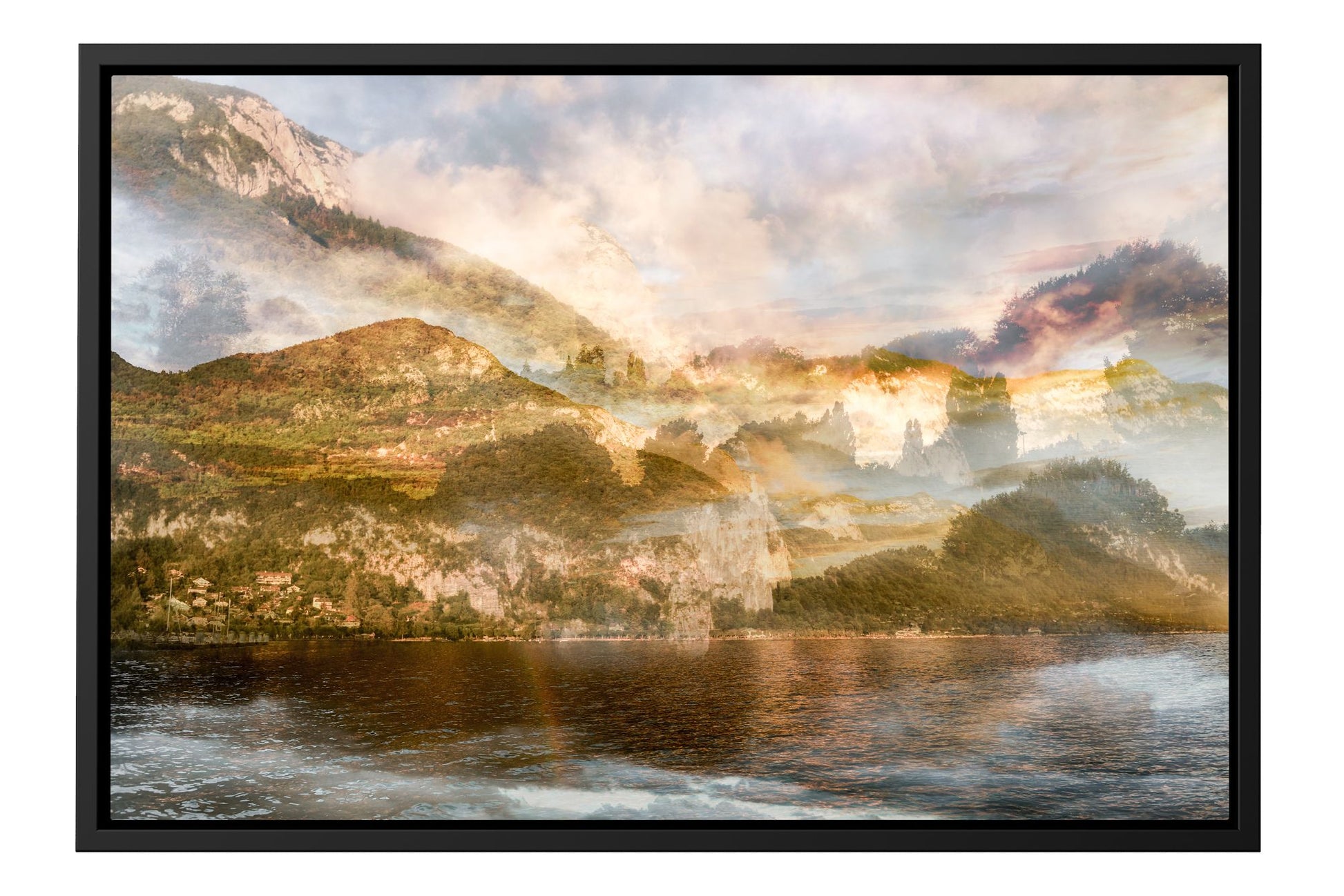 In Sunset over Mont Veyrier, Charlotte Fonne reimagines the serene beauty of her hometown in the French Alps through her layered photographic technique. The artwork reflects her memories of summer evenings by Lake Annecy, where the village of Veyrier-du-Lac lies at the mountain’s base. Warm sunset tones illuminate the forest and stone, casting a gentle light that evokes both quiet reflection and natural splendor. Echoing the spirit of Impressionism, this fine art photography print recalls the luminous atmosphere of Claude Monet’s Meules, transforming personal memory into a universal invitation to pause and appreciate the poetry of light in nature.