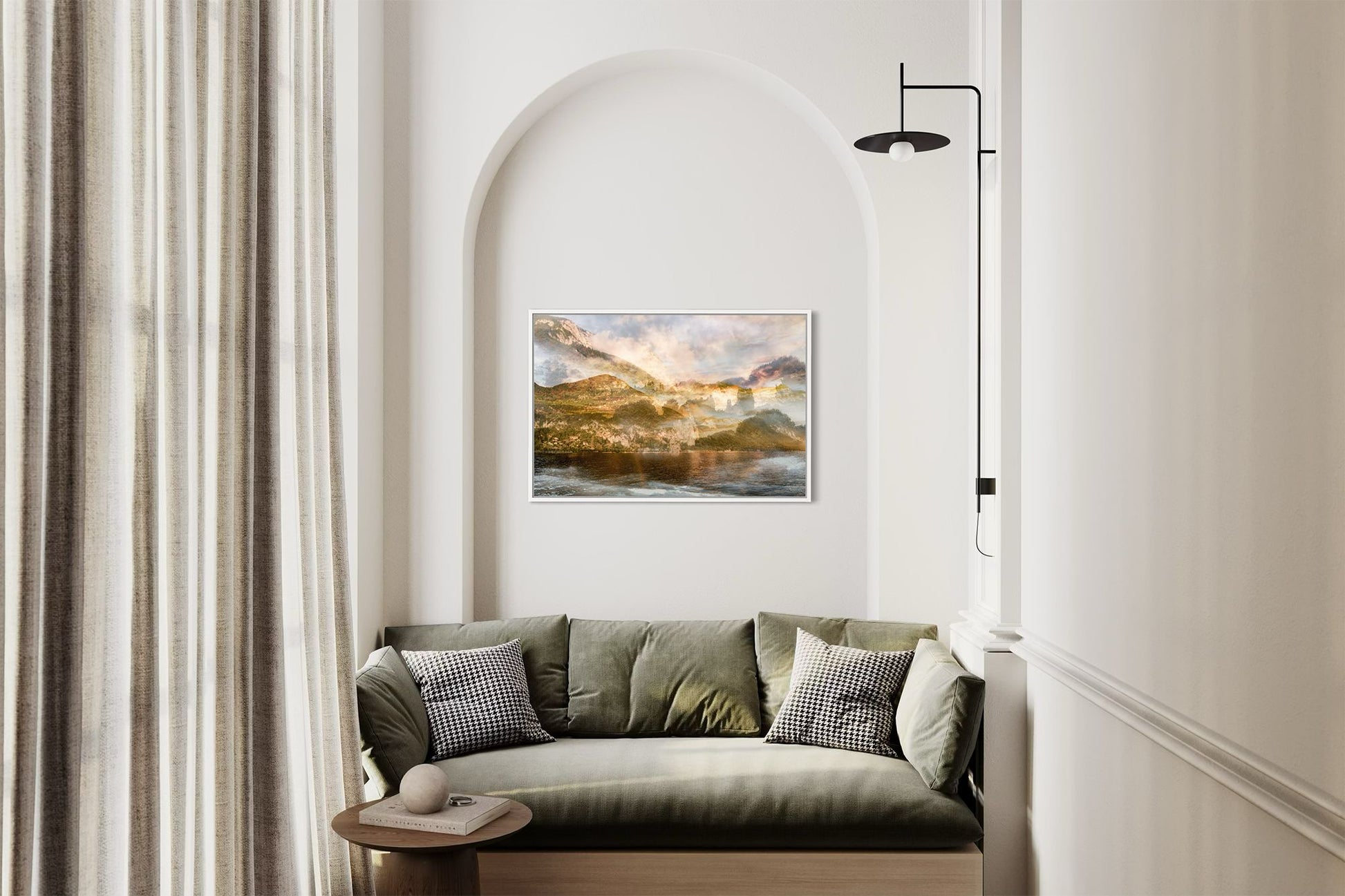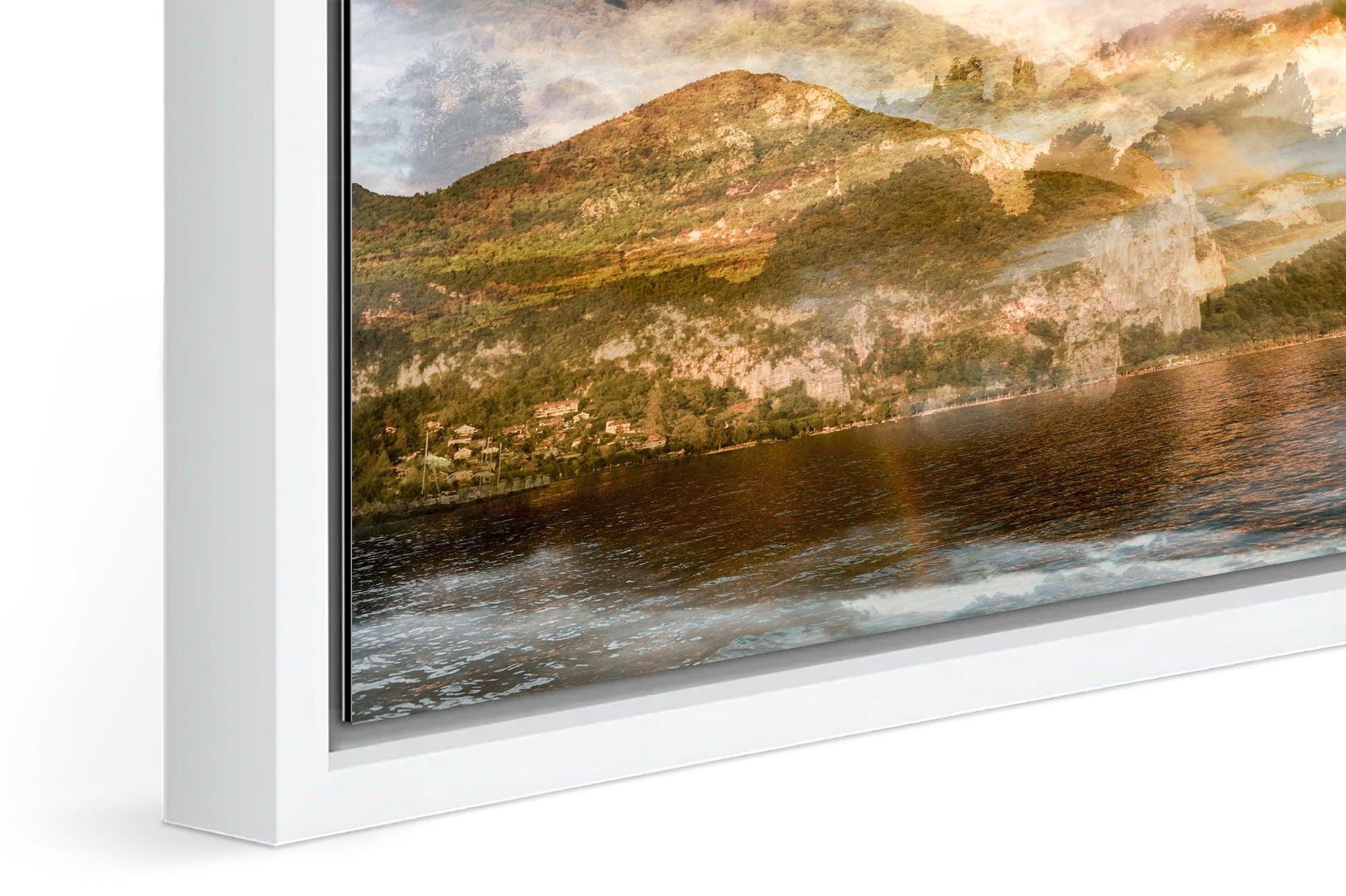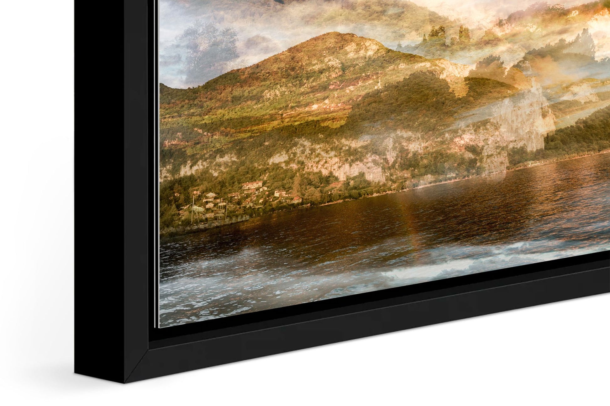 This custom-made solid hardwood frame creates a unique visual effect with a gap between the image and the frame, giving the impression that your artwork is levitating. The contemporary design is both elegant and subtle, enhancing the presence of the piece without overwhelming it. Available in two colors, black or white, the frame complements a variety of styles.